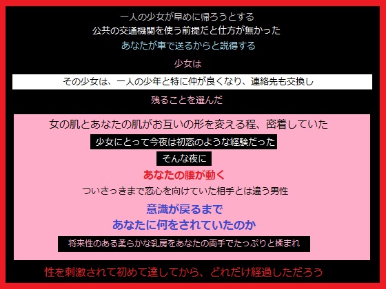 ![少年ととても仲良くなった少女を、家まで車で送ると言ってあなたは [画像提供元:DLsite.com] 少年ととても仲良くなった少女を、家まで車で送ると言ってあなたは](https://img.dlsite.jp/modpub/images2/work/doujin/RJ237000/RJ236025_img_main.jpg)