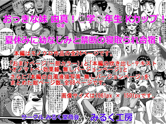 ![おっきな妹 由真!○学○年生Kカップ!夏休みに幼なじみと禁断の寝取られ合宿! [画像提供元:DLsite.com] おっきな妹 由真!○学○年生Kカップ!夏休みに幼なじみと禁断の寝取られ合宿!](https://img.dlsite.jp/modpub/images2/work/doujin/RJ210000/RJ209217_img_smp3.jpg)