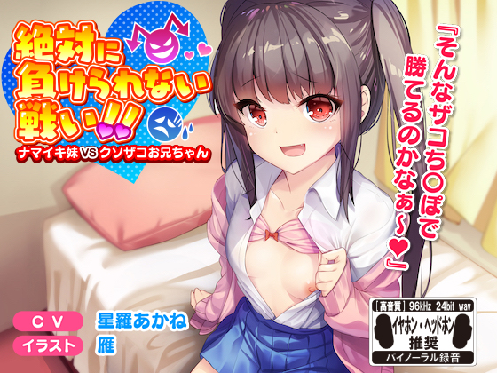 ![絶対に負けられない戦い!!ナマイキ妹VSクソザコお兄ちゃん※バイノーラル※ [画像提供元:DLsite.com] 絶対に負けられない戦い!!ナマイキ妹VSクソザコお兄ちゃん※バイノーラル※](https://img.dlsite.jp/modpub/images2/work/doujin/RJ265000/RJ264387_img_main.jpg)