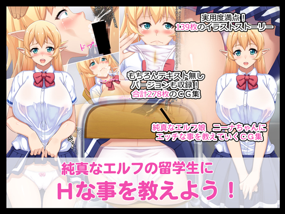 本作品は純真なエルフの留学生 ニーナにエッチな事を教えていくCG集です。